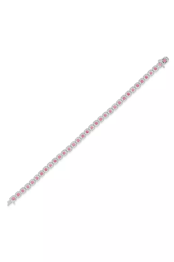 Pink Diamonds Cushion Milgrain Tennis Bracelet