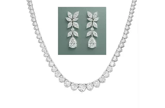 Read moreThis breathtaking eternity band is designed for a show-stopping presence, worthy of the red carpet. It features a dazzling, continuous line of alternating pear-shaped eco diamonds that are meticulously matched and set to maximise their brilliance. The unique orientation of the pear cuts creates a dynamic, light-catching texture, resulting in a distinctively luxurious look. Rent this exceptional diamond band for your next special occasion to add undeniable sparkle and sophistication to any ensemble.
