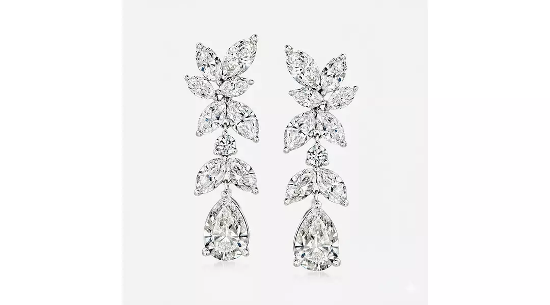 Read moreMake a dazzling entrance with these elegant diamond drop earrings, featuring a graceful cascade of marquise, pear-shaped, and round brilliant-cut stones arranged in a delicate floral design. Inspired by the natural beauty of falling petals, these luxury statement earrings are perfect for weddings, black-tie events, or any special occasion where you want to shine.