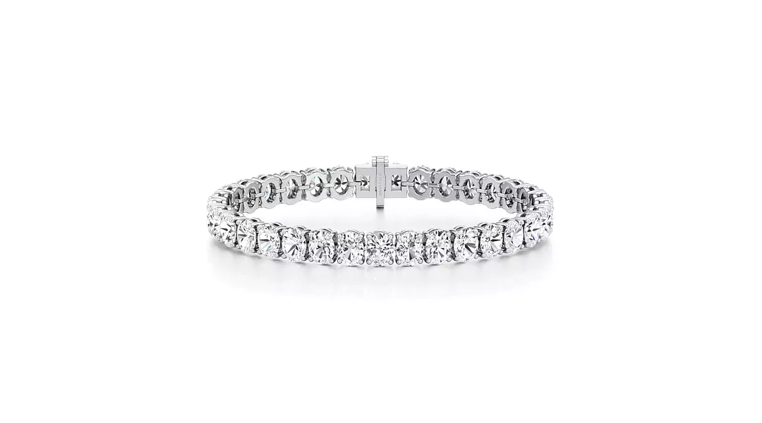 Each oval eco diamond is set in a stylish North South orientation, creating an elongated linear diamond naturally draws the eye along the wrist. The seamless row of premium white diamond forms a continuous ribbon of brilliance, with each oval diamond perfectly calibrated to match the next. The contemporary diamond orientation gives the bracelet a refined silhouette—slender, elongated, and undeniably luxurious.