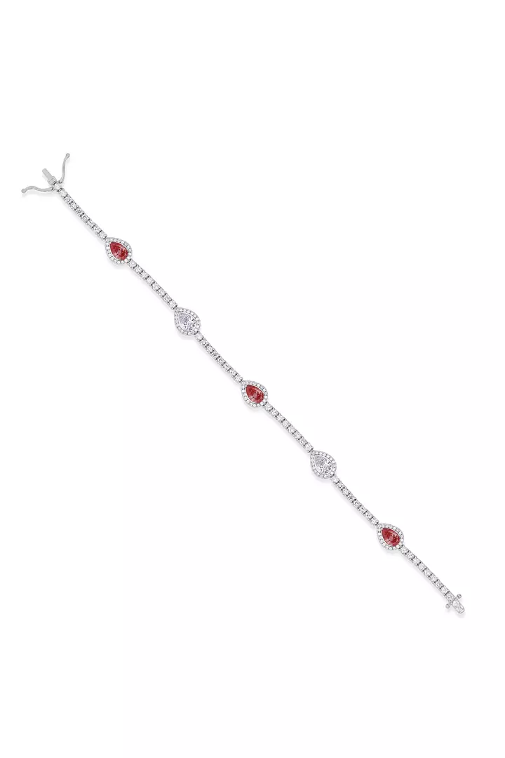 Pink and White Diamonds Tennis Bracelet set in 14k white gold