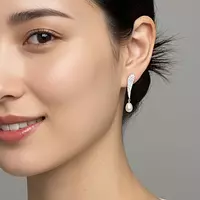 Read moreOne of a kind diamond and pearls drop earrings, set in 14k white gold. Pave set natural diamonds adorn the wing inspired design of the earrings, and finish with a playful natural cultured white pearl, which dances with every move of the wearer. Rent these gorgeous diamond earrings for your next special event.