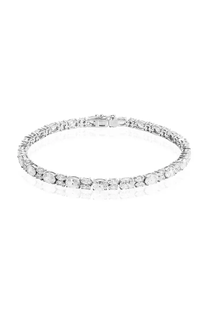 Read moreRent this gorgeous oval and marquise shaped natural diamonds bracelet set in 18k white gold, for your next special occasion. Perfect "something borrowed" for a wedding day jewelry for the bride, or simply as a statement piece for any special event where you want to steal the spotlight. Featuring premium natural white diamonds, this tennis bracelet design captures the light from all angles and creates spectacular brilliance.