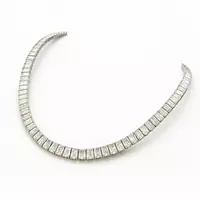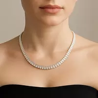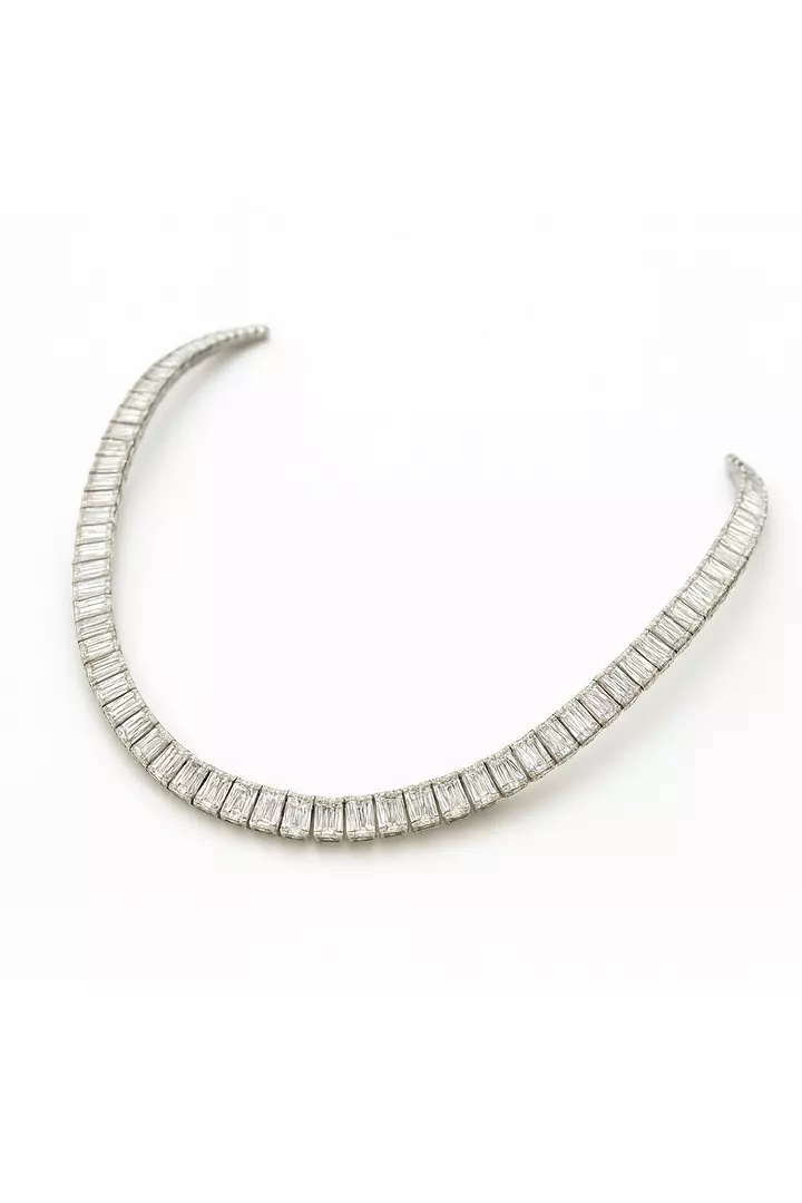 Read moreElevate your look with this exquisite Emerald Cut Eco Diamonds Tennis Necklace, meticulously crafted in 14K white gold. Featuring 142 emerald-cut diamonds with a combined weight of 29.97 carats, each stone is hand-set in a secure 4-prong setting to maximize brilliance and symmetry.