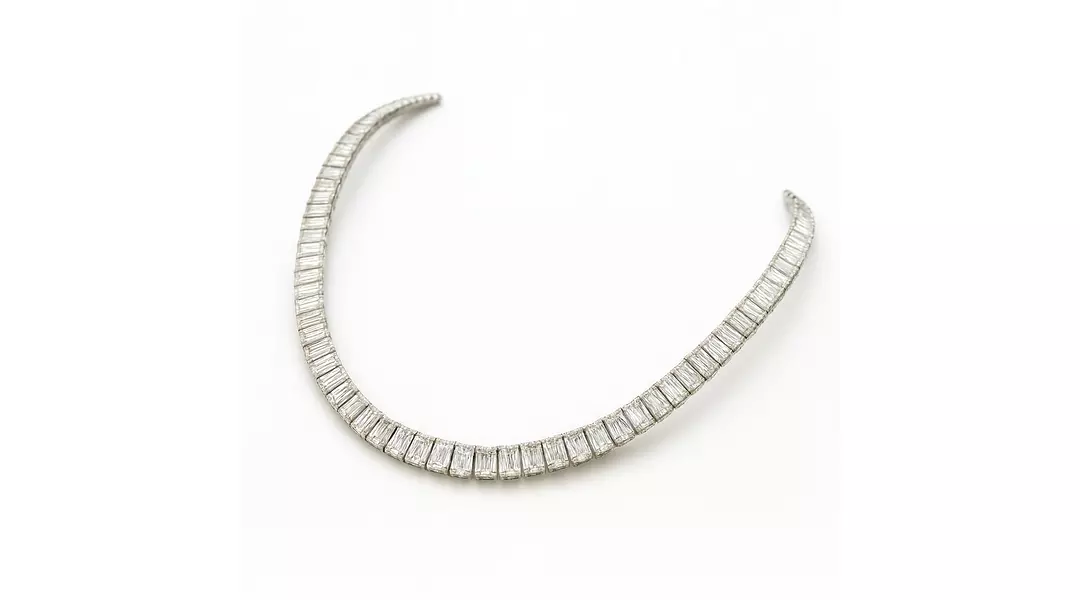 Perfect for weddings, red-carpet events, or elegant evenings, this necklace delivers a striking linear silhouette with modern emerald-cut precision.
