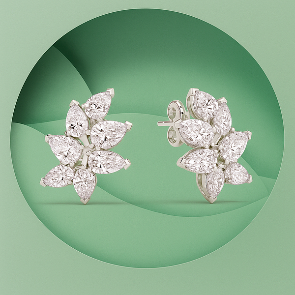 Read moreEvelisse Pear Shape Eco Diamonds Cluster Earrings bring refined beauty and brilliance when you rent them for your next special occasion. Crafted with eco-friendly pear-shaped diamonds, arranged in a radiant cluster design, these earrings offer timeless sophistication with a modern edge. Perfect for brides, mothers of the bride, or anyone attending a black-tie event, they add the perfect finishing touch to your look. Available to rent exclusively at Trejours, they make luxury accessible for your most unforgettable moments.