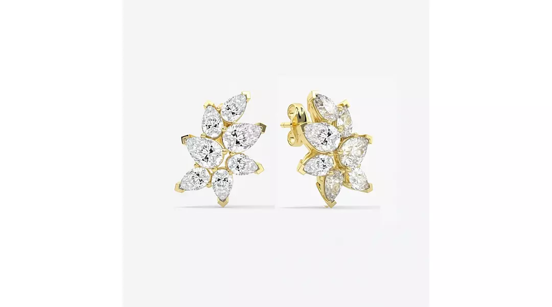 Read moreEvelisse Pear Shape Eco Diamonds Cluster Earrings bring refined beauty and brilliant sparkle to any occasion. Crafted with eco-friendly pear-shaped diamonds arranged in a radiant cluster design, these earrings offer timeless sophistication with a modern edge. Perfect for brides, mothers of the bride, or anyone attending a black-tie event, they add the perfect finishing touch to your look. Available to rent exclusively at Trejours, they make luxury accessible for your most unforgettable moments.”