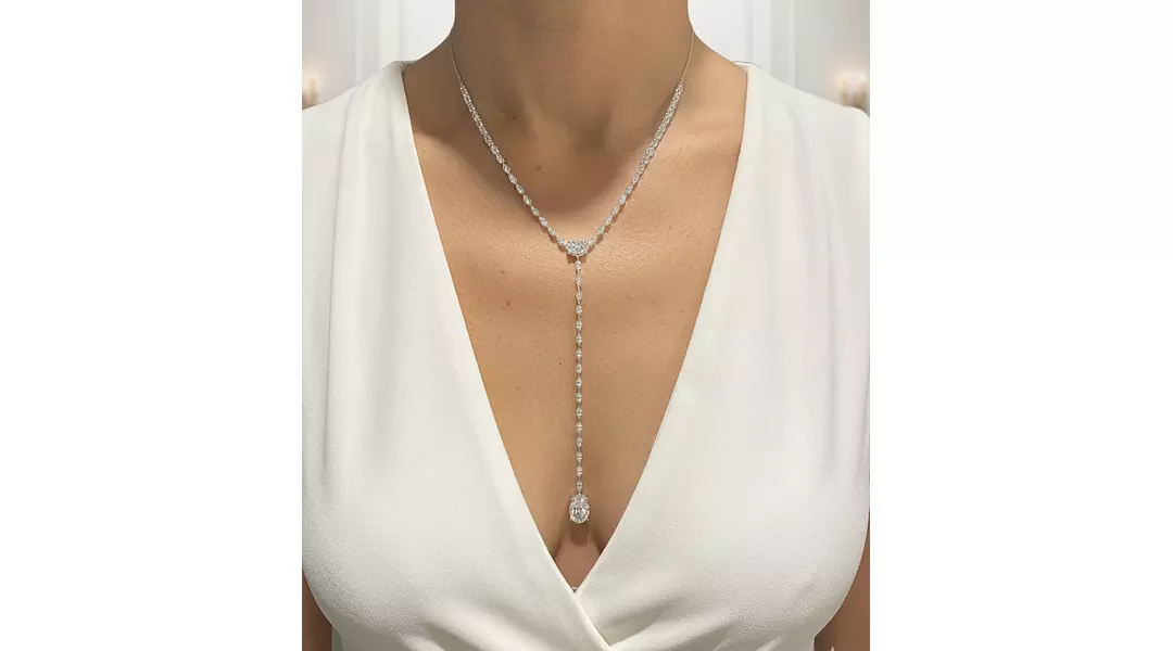 Read moreMake a statement with this stunning Lariat Eco Diamonds Necklace, featuring a dazzling oval diamond drop that plunges elegantly to highlight your neckline. Crafted in 14k white gold, this unique necklace strikes the perfect balance between exquisite and distinctive, while reflecting New York style and sophistication. Rent this one-of-a-kind eco diamond creation and experience the allure of luxury jewelry that elevates your look — without the long-term commitment of ownership.