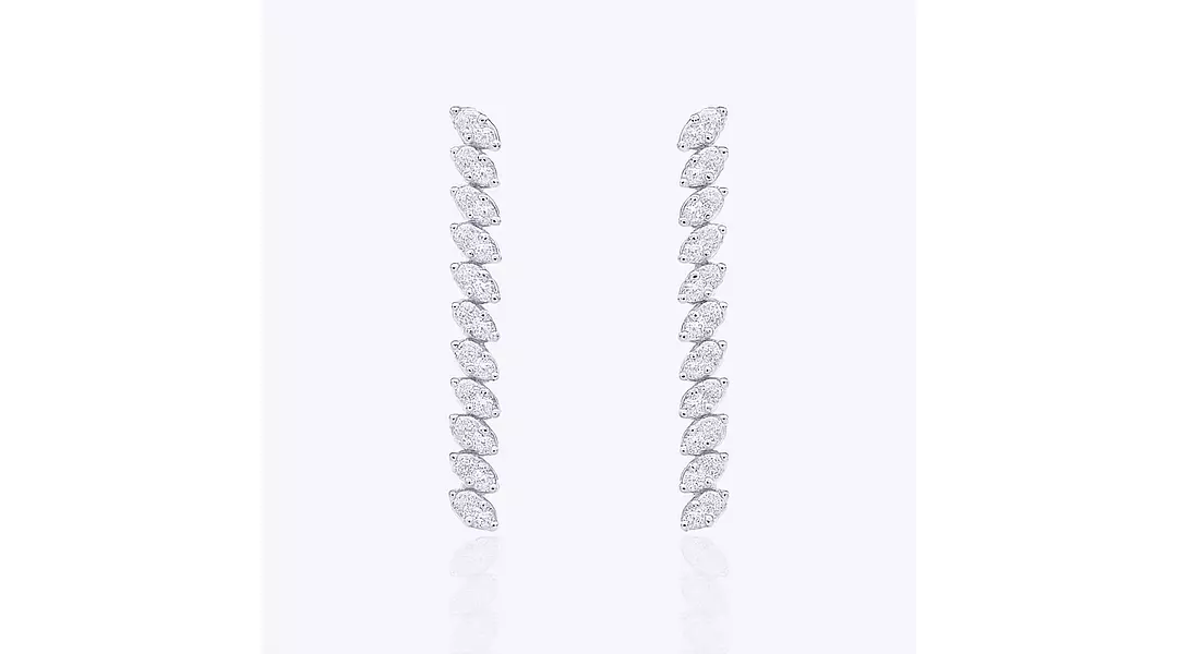 Read moreThese Marquise Eco Diamond Linear Drop Earrings bring effortless drama and high-fashion elegance to any special occasion. Designed with a continuous cascade of sparkling marquise-cut eco diamonds, they create a graceful, elongated silhouette that elevates your look instantly. Perfect for weddings, galas, and formal nights — borrow them from Trejours and enjoy being the center of attention with radiant, head-turning brilliance.
