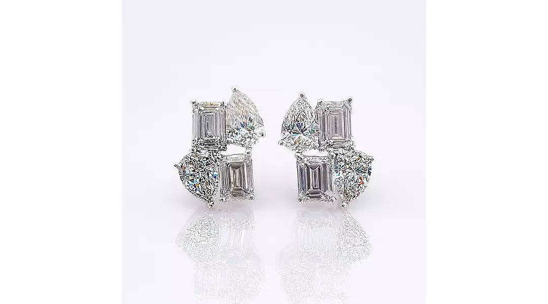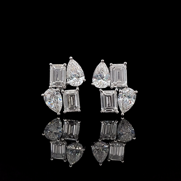 Modern Cluster Pear and Emerald Shape Eco Diamonds Earrings