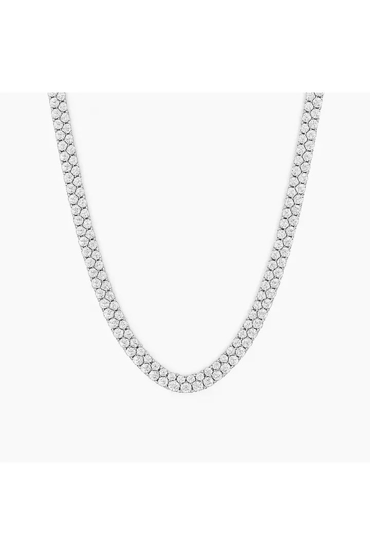 Read moreElevate your ensemble with this stunning double row eco diamond tennis necklace, available to rent for your next special occasion. Crafted in 14K white gold, this piece features two seamless lines of round brilliant-cut diamonds, designed to frame the neckline with exceptional radiance.