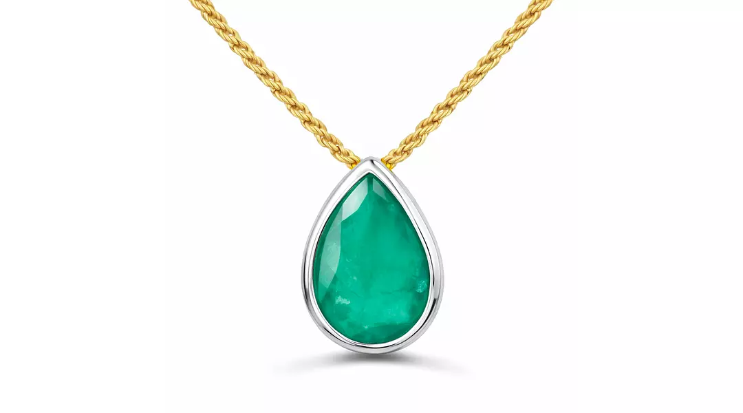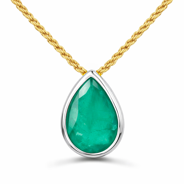 Embrace the allure of this breathtaking emerald necklace as you borrow a touch of Brazilian elegance for your next glamorous event. The pear-shaped emerald, ensconced within a skillfully crafted white gold bezel, creates a harmonious union of sophistication and style. Suspended from a radiant yellow gold chain adorned with bezel-set diamonds, this necklace is a testament to refined taste and opulent design. Elevate your ensemble by renting this striking piece and revel in the enchantment of genuine Brazilian emeralds, ensuring you make a lasting impression at any soirée.
