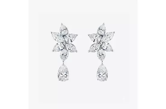 Read moreDramatic, elegant, and unapologetically brilliant, these mega cluster diamond earrings are the definition of a statement piece. Crafted in 14k white gold and set with an extraordinary 11.5 carats of eco-friendly lab-grown diamonds, each pear and marquise cut diamond is meticulously arranged in a starburst cluster that catches light from every angle. The result? Exceptional brilliance with a sculptural floral twist. Perfect for a wedding aisle entrance or a red carpet-level event, these earrings are made for moments that demand attention. Bold yet refined, they bring couture-level sparkle without the commitment—available to rent exclusively through Trejours.