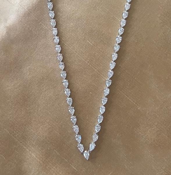 Tennis Necklace in 14k White Gold with Pear Shaped Eco Diamonds