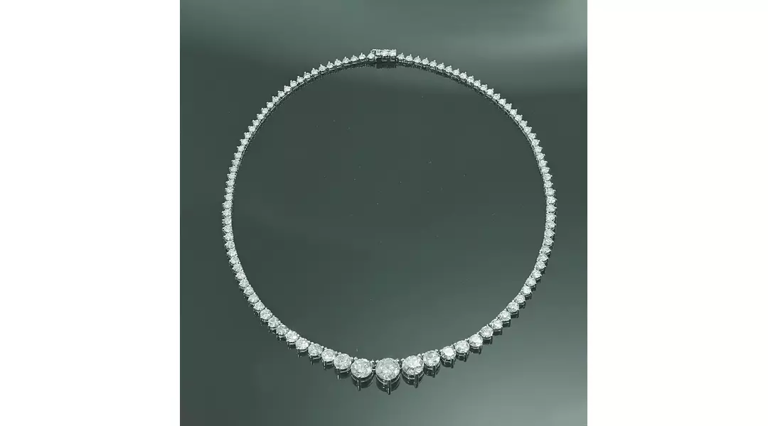 Read moreDazzle at your next unforgettable occasion with our breathtaking 20 ctw Riviera-style graduated diamond necklace in white gold—a masterful balance of timeless elegance and modern sophistication. Inspired by the classic tennis necklace, this red carpet-worthy piece elevates the look with a dramatic graduated design, drawing the eye to its brilliance and fire.