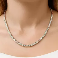 With a total weight of 10.89 carats and an average of 0.09 points per stone, this 16-inch necklace is crafted to deliver both brilliance and balance. The 4-prong setting secures each diamond in place while maintaining a sleek, uninterrupted flow along the neckline.