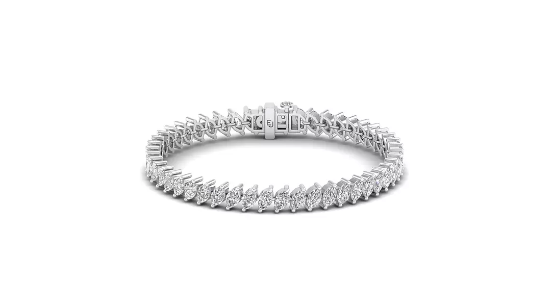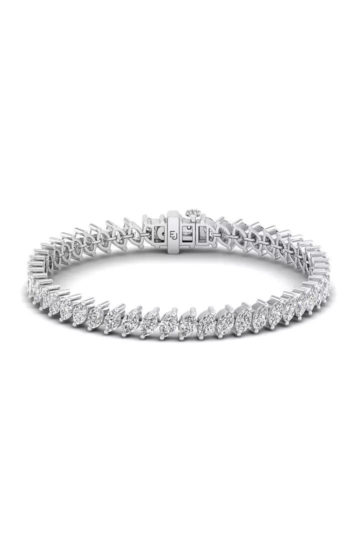 Sideways marquise eco diamonds tennis bracelet set in 14k white gold