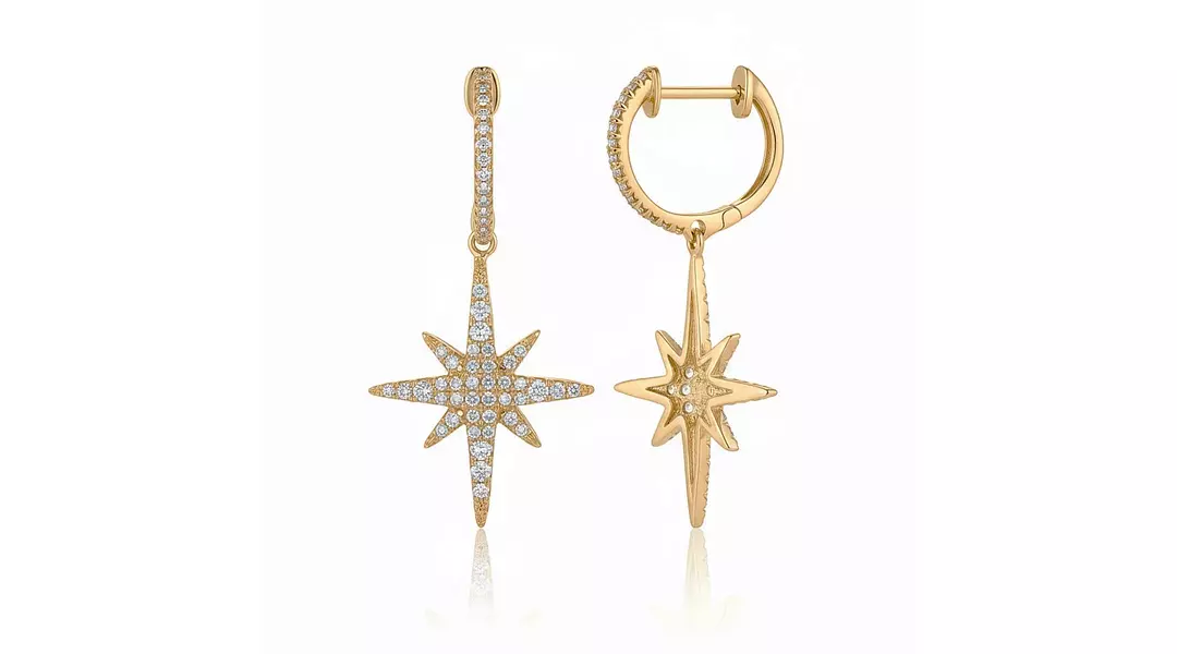 Read moreStarburst drop diamond cocktail earrings in rich yellow gold. Perfect luxury accessory to create drama for a special night or a special event. Elevate your evening ensemble with the mesmerizing allure of Starburst Drop Diamond Cocktail Earrings, resplendently crafted in opulent rich yellow gold. This pair of exquisite earrings is a testament to luxury, designed to infuse drama into any special night or event. The captivating starburst design, adorned with dazzling diamonds, adds a touch of glamour that is sure to turn heads and leave a lasting impression. Whether you're attending a soirée, gala, or a black-tie affair, these earrings are the perfect accessory to rent for the occasion, allowing you to bask in the radiance of sophistication without the commitment of permanent ownership.