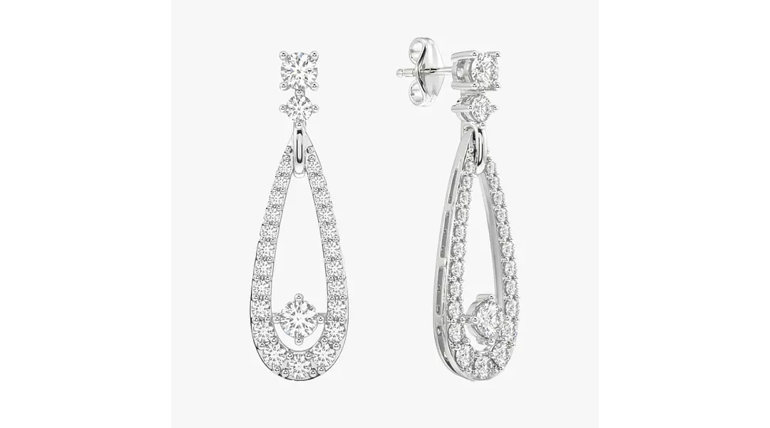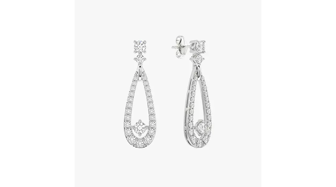 Read moreRent these exquisite pave teardrop drop earrings and elevate your look instantly. Featuring a timeless, elegant design, these earrings showcase a sophisticated, open teardrop silhouette beautifully lined with brilliant, closely-set round stones. They are gracefully suspended from a modern setting featuring two graduating round stones, leading to a charming drop. For an added focal point of light, a single, prominent round stone is elegantly bezel-set within the base of the teardrop frame. With a secure post-back closure, these earrings are the perfect "something borrowed" accessory, providing brilliant as bridal jewelry or adding glamorous shine for any special occasion.