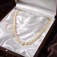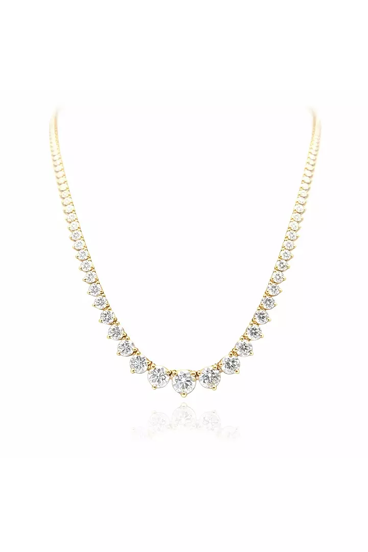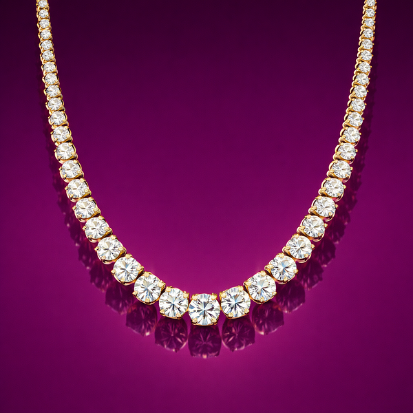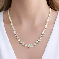 Read moreThe Classic Diamond Riviera Necklace is a timeless expression of elegance and refinement. Featuring a seamless line of meticulously set round brilliant diamonds, this necklace delivers continuous sparkle that gracefully follows the neckline. Crafted to highlight the natural brilliance of each stone, its balanced design creates a luxurious yet understated look that never goes out of style.
