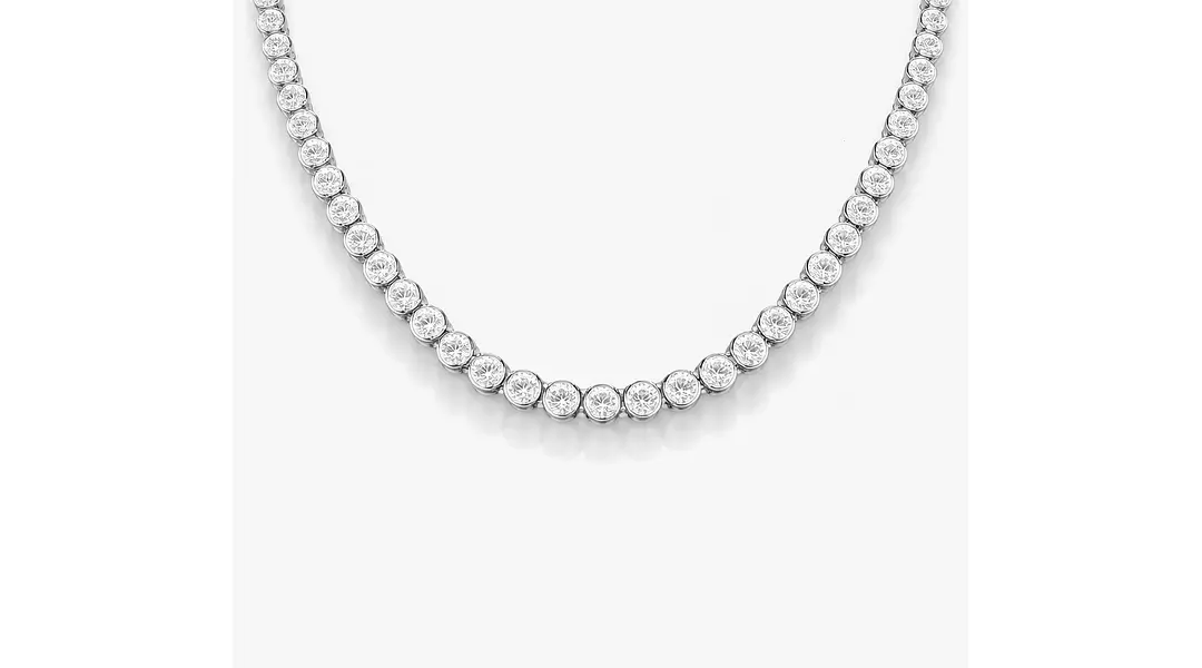 Read moreA seamless line of diamond brilliance, this white gold eco diamonds tennis necklace features perfectly matched round brilliant cut eco diamonds, each set in a sleek bezel that enhances the diamond brilliance while creating a smooth, modern silhouette. The continuous circle of diamonds sits elegantly along the collarbone, catching every movement with refined fire — luxurious without feeling overdone. Designed to elevate everything from an evening gown to a minimalist cocktail dress, this contemporary twist on a classic diamond tennis necklace delivers maximum impact with effortless sophistication. Available to rent for your most special occasions, it’s the kind of understated glamour that makes a lasting impression without saying a word.