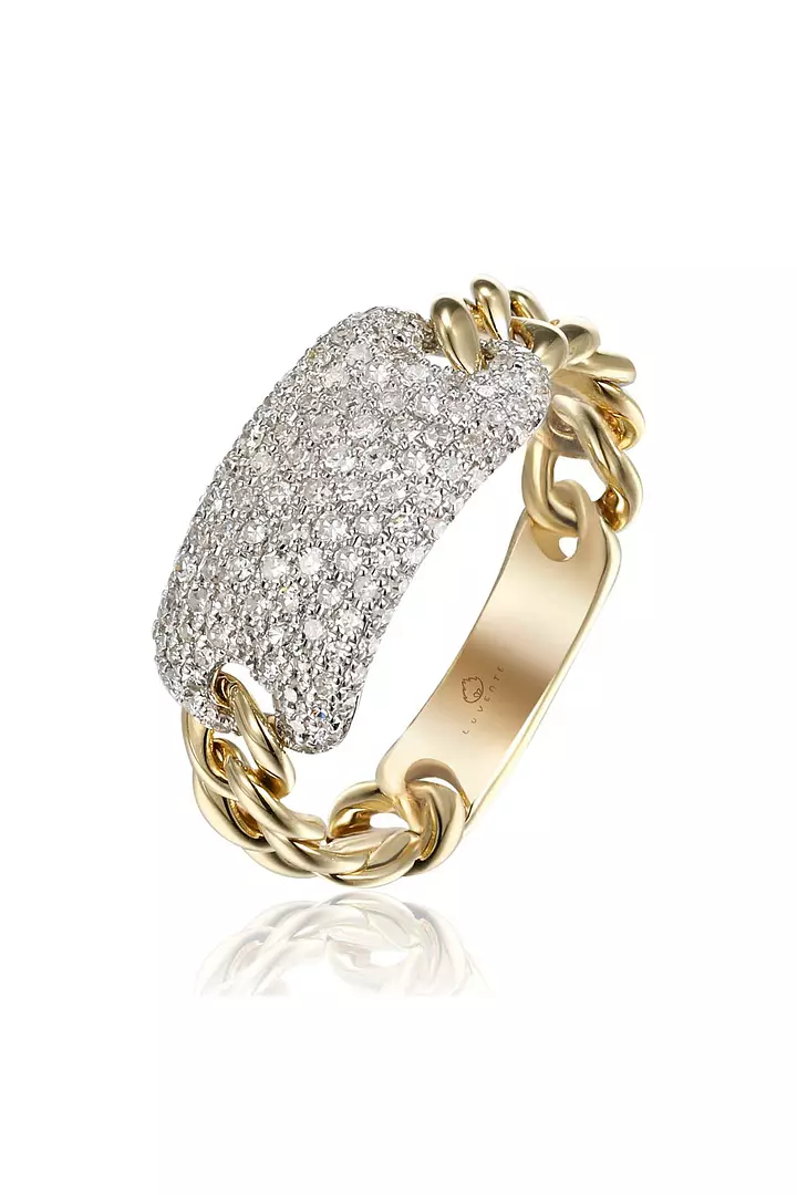 Yellow Gold Infinity Chain Link Pave Diamond Ring