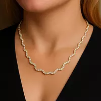 Read moreIntroducing the Wavy Yellow Gold Eco Diamonds Tennis Necklace, a stunning diamond necklace rental exclusively available at Trejours. This diamond necklace redefines classic glamour with a modern, fluid design. The necklace features a continuous, serpentine line of brilliant-cut eco diamonds set in warm, lustrous 14k yellow gold, creating an eye-catching, undulating silhouette. The unique wavy pattern offers exceptional movement and brilliance, making it the perfect statement accessory to elevate any occasion, from elegant cocktail parties to grand black-tie events. Rent this luxurious diamond necklace today to add a touch of sophisticated, A-list sparkle to your wardrobe.